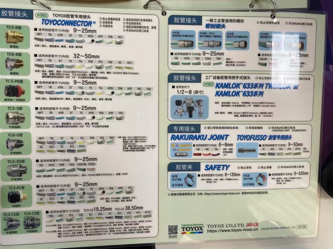 提供豐富的膠管與接頭組合,覆蓋耐熱、耐油、耐藥品、食品級(jí)等多種類型,適用于流體輸送領(lǐng)域的多樣化需求。