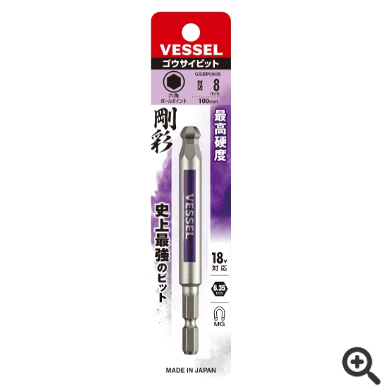 日本VESSEL威威 單頭鋼彩圓形頭內(nèi)六角批頭GSBP030S